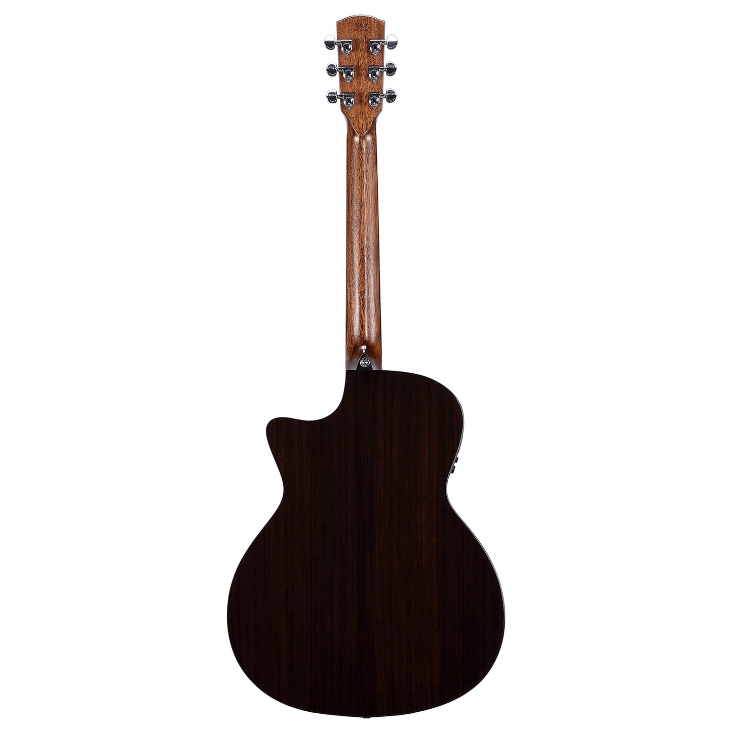 The AEG70ce is a beautifully responsive Grand Auditorium guitar delivering glistening trebles and a robust, clear bass response that makes this guitar suitable for most styles of music and playing. It has an understated elegance with striking contrast between the natural AA Sitka top and dark Indian rosewood back and sides. The bevel armrest is also made from Rosewood, which lets it blend into the guitar’s aesthetic, while adding a level of sophistication to the overall look of the guitar.