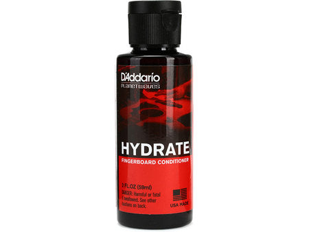 Just what your fingerboard needs! Hydrate from D'Addario restores the character of your dark, natural wood fingerboards. It's a unique formula of oils and cleaners that makes your fingerboard feel clean and fast with a great-looking, glowing surface. Plus, when you use Hydrate your guitar's fingerboard will be protected from damaging sweat, dirt, and grime. Don't leave your fingerboard out of your regular guitar-care routine. Put a bottle of Hydrate in your guitar case today.