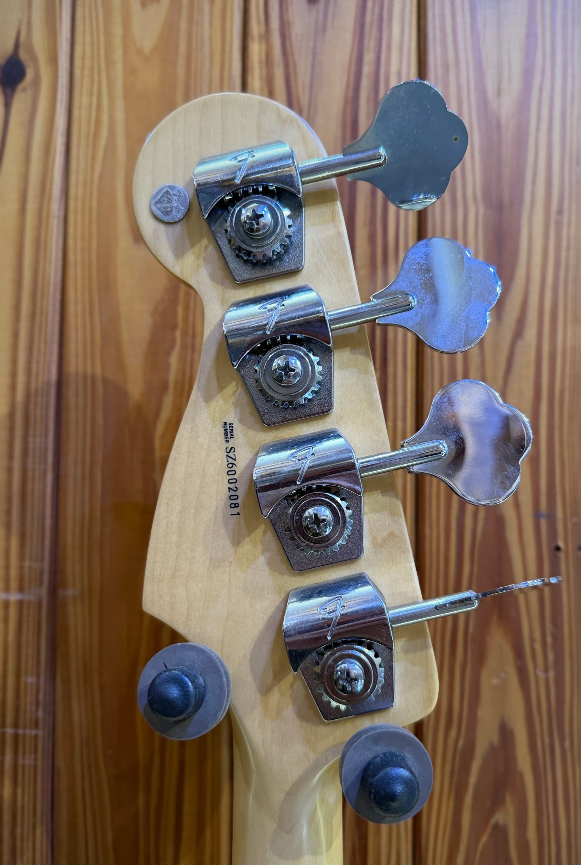 This is a pre-loved Jazz Bass in very good condition. The pickguard still has the plastic covering.