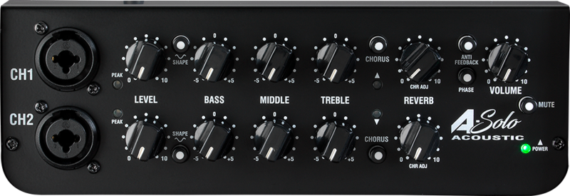 The A-Solo is a professional, compact and portable acoustic guitar amplifier, dedicated to delivering a clean and clear amplified acoustic guitar tone wherever you need it. Whether in the Studio or live on stage the A-SOLO delivers every time. The A-SOLO has two completely independent channel strips. Flexible enough to allow for connection of either a mic and an instrument, two different acoustic instruments or even a blend of separate mic and pickup connections from the same instrument.