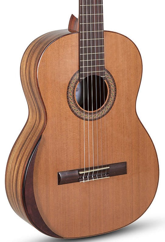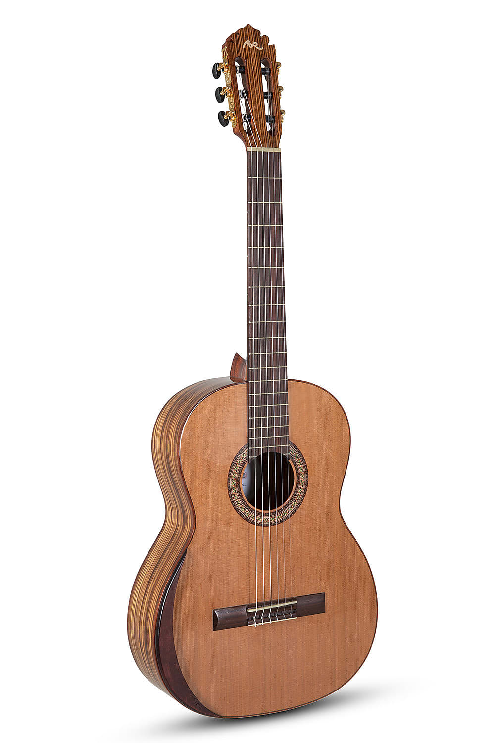 Introducing the Manuel Rodriguez Academia 40-C 'Cedar / Zebrano' Classical Guitar, a high-quality instrument offering powerful sound at an accessible price point. Crafted in the best Spanish tradition, this guitar delivers an immersive sound experience, making it ideal for musicians seeking to hone their classical guitar skills.