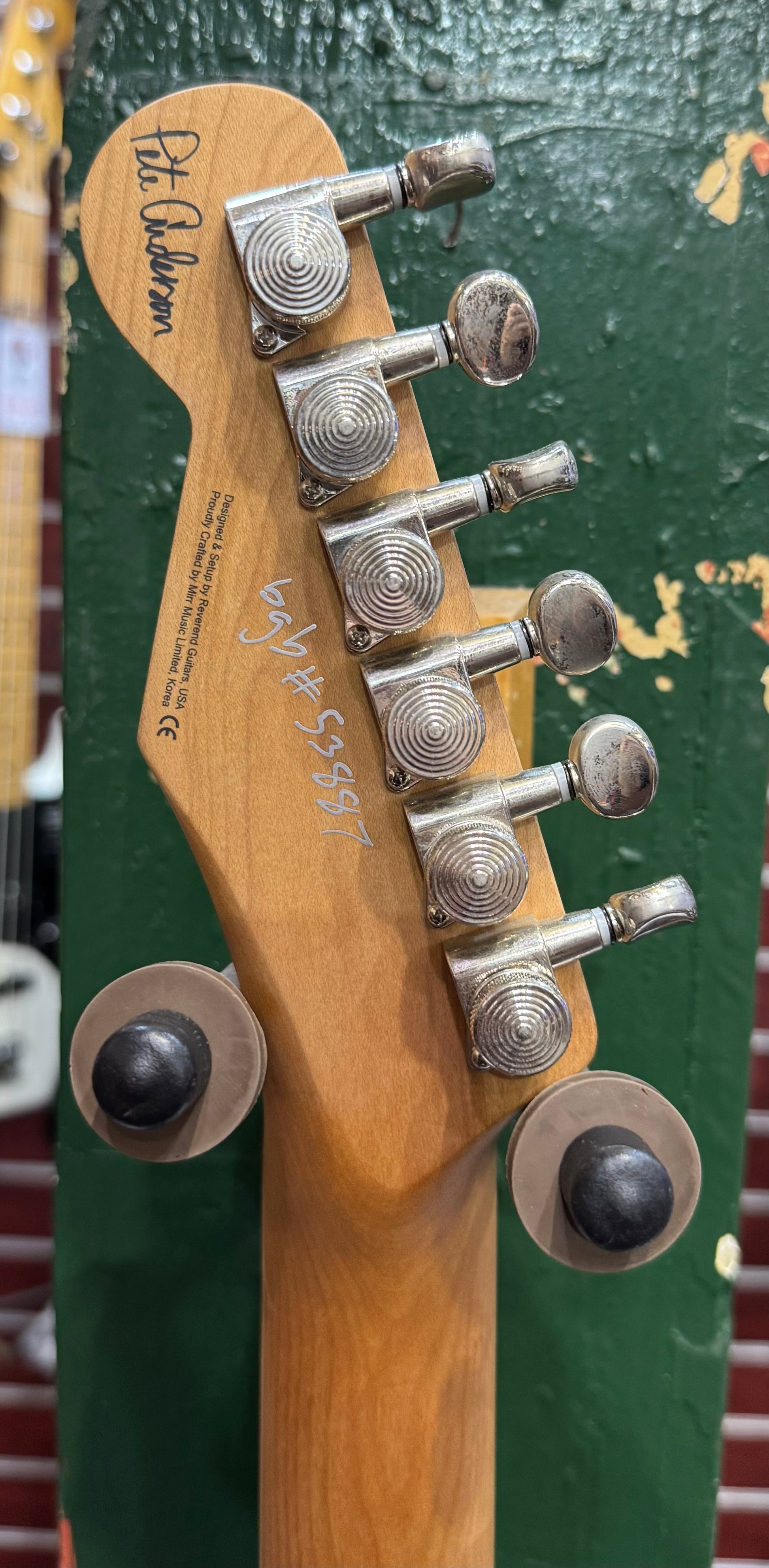 DISCLAIMER: Satin clear coats and nickel hardware as seen on the Pete Anderson signature guitars have certain physical characteristics that predispose them to aging and looking like a vintage instrument more rapidly than other finishes. As with all Reverend signature models, the choices to use these materials were made by the artist and are included on these guitars to better fit their vision of an ideal instrument.